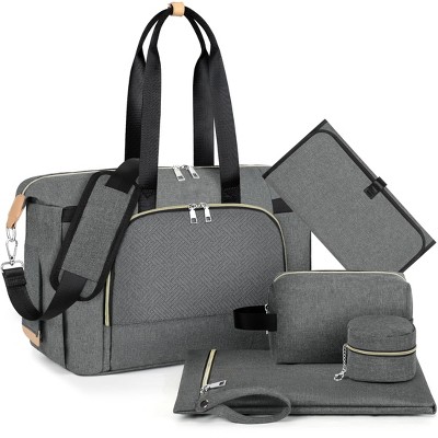 A baby’s day out is made easy with diaper bags. A diaper bag has multiple pockets that help parents carry & organize their baby’s diapering essentials. The pockets are tailored to fit everything that someone taking care of a baby needs on a short trip. They also allow hands-free comfort for parents to take care of their energetic little ones. These baby bags come in many styles and designs. When packed well, they can fit diapers, baby wipes, bottles, pacifiers and more. At Target, find a wide range of diaper bags for a do-it-all parent-ninja. Browse through a range of messenger, shoulder, backpack, and tote diaper bags. If you prefer a large baby bag, you can go for a diaper backpack that has large compartments. A backpack is a great combination with a front baby carrier. A tote-style diaper bag is compact and can easily fit in a stroller. Look through diaper bag styles that are waterproof, insulated and convertible. Choose from diaper bag varieties that store diapers and parent essentials like wallets and purses with ease. Enjoy carefree short trips with your little munchkin, with a diaper bag from Target.