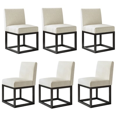 Pexfix White Linen Upholstered Dining Chairs Set of 2