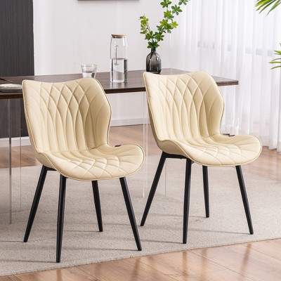 Create a welcoming setup with dining chairs that help transform your space. Elevate your open kitchen, breakfast counter or dining room with the right furniture & comfy seating. Check out Target.com to find a variety of dining room chairs, from clean-lined, minimal wood or rattan chairs to traditional upholstered armchairs for your formal dining room. Keep things clean & elegant with modern dining chairs or go vintage with mid-century modern designs that combine style & functionality. Embrace a casual, rustic aesthetic with farmhouse-style dining table & chairs with ladderback accents, usually made of wood or powder-coated steel. Need ideas to spruce up your traditional dining room? Make a decor statement with an accent chair like a dining armchair or a high-back chair with upholstered armrests. It brings luxurious comfort & pops of pattern with velvet or tufted upholstery. Mix it up with upholstered ottoman, stools & benches for a more casual setup. A mix of stationery & swivel styles work great as dining room chair for creating a dynamic seating style. Make room for more with side chairs, side benches & barstools that fit great in less traditional settings like a kitchen table or an eat-in counter. Stackable chairs also make a versatile pick for space-saving dining room decor.