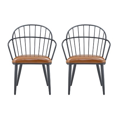 LumiSource Set of 2 Rina Fabric Chair Walnut Wood