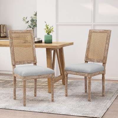 Create a welcoming setup with dining chairs that help transform your space. Elevate your open kitchen, breakfast counter or dining room with the right furniture & comfy seating. Check out Target.com to find a variety of dining room chairs, from clean-lined, minimal wood or rattan chairs to traditional upholstered armchairs for your formal dining room. Keep things clean & elegant with modern dining chairs or go vintage with mid-century modern designs that combine style & functionality. Embrace a casual, rustic aesthetic with farmhouse-style dining table & chairs with ladderback accents, usually made of wood or powder-coated steel. Need ideas to spruce up your traditional dining room? Make a decor statement with an accent chair like a dining armchair or a high-back chair with upholstered armrests. It brings luxurious comfort & pops of pattern with velvet or tufted upholstery. Mix it up with upholstered ottoman, stools & benches for a more casual setup. A mix of stationery & swivel styles work great as dining room chair for creating a dynamic seating style. Make room for more with side chairs, side benches & barstools that fit great in less traditional settings like a kitchen table or an eat-in counter. Stackable chairs also make a versatile pick for space-saving dining room decor.