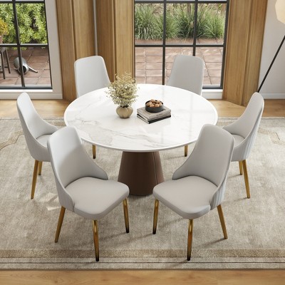 Create a welcoming setup with dining chairs that help transform your space. Elevate your open kitchen, breakfast counter or dining room with the right furniture & comfy seating. Check out Target.com to find a variety of dining room chairs, from clean-lined, minimal wood or rattan chairs to traditional upholstered armchairs for your formal dining room. Keep things clean & elegant with modern dining chairs or go vintage with mid-century modern designs that combine style & functionality. Embrace a casual, rustic aesthetic with farmhouse-style dining table & chairs with ladderback accents, usually made of wood or powder-coated steel. Need ideas to spruce up your traditional dining room? Make a decor statement with an accent chair like a dining armchair or a high-back chair with upholstered armrests. It brings luxurious comfort & pops of pattern with velvet or tufted upholstery. Mix it up with upholstered ottoman, stools & benches for a more casual setup. A mix of stationery & swivel styles work great as dining room chair for creating a dynamic seating style. Make room for more with side chairs, side benches & barstools that fit great in less traditional settings like a kitchen table or an eat-in counter. Stackable chairs also make a versatile pick for space-saving dining room decor.