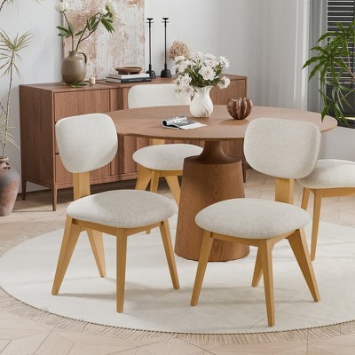 Create a welcoming setup with dining chairs that help transform your space. Elevate your open kitchen, breakfast counter or dining room with the right furniture & comfy seating. Check out Target.com to find a variety of dining room chairs, from clean-lined, minimal wood or rattan chairs to traditional upholstered armchairs for your formal dining room. Keep things clean & elegant with modern dining chairs or go vintage with mid-century modern designs that combine style & functionality. Embrace a casual, rustic aesthetic with farmhouse-style dining table & chairs with ladderback accents, usually made of wood or powder-coated steel. Need ideas to spruce up your traditional dining room? Make a decor statement with an accent chair like a dining armchair or a high-back chair with upholstered armrests. It brings luxurious comfort & pops of pattern with velvet or tufted upholstery. Mix it up with upholstered ottoman, stools & benches for a more casual setup. A mix of stationery & swivel styles work great as dining room chair for creating a dynamic seating style. Make room for more with side chairs, side benches & barstools that fit great in less traditional settings like a kitchen table or an eat-in counter. Stackable chairs also make a versatile pick for space-saving dining room decor.