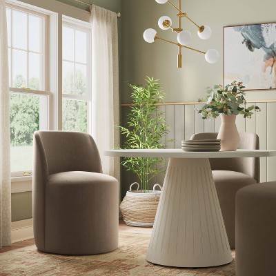 Create a welcoming setup with dining chairs that help transform your space. Elevate your open kitchen, breakfast counter or dining room with the right furniture & comfy seating. Check out Target.com to find a variety of dining room chairs, from clean-lined, minimal wood or rattan chairs to traditional upholstered armchairs for your formal dining room. Keep things clean & elegant with modern dining chairs or go vintage with mid-century modern designs that combine style & functionality. Embrace a casual, rustic aesthetic with farmhouse-style dining table & chairs with ladderback accents, usually made of wood or powder-coated steel. Need ideas to spruce up your traditional dining room? Make a decor statement with an accent chair like a dining armchair or a high-back chair with upholstered armrests. It brings luxurious comfort & pops of pattern with velvet or tufted upholstery. Mix it up with upholstered ottoman, stools & benches for a more casual setup. A mix of stationery & swivel styles work great as dining room chair for creating a dynamic seating style. Make room for more with side chairs, side benches & barstools that fit great in less traditional settings like a kitchen table or an eat-in counter. Stackable chairs also make a versatile pick for space-saving dining room decor.