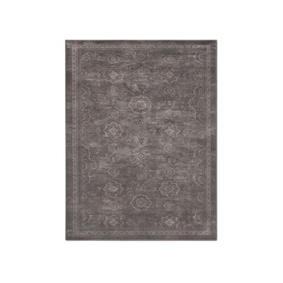 Itopfox Washable Vintage Traditional Gray Floral Print Area Rug, Non Slip Thin Retro Accent Indoor Distressed Carpet for Bedroom Living Room Bathroom