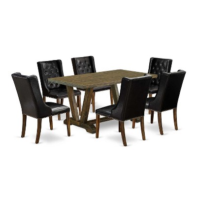 - dark brown dining table set for 6
