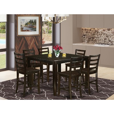 - dark brown dining table set for 6