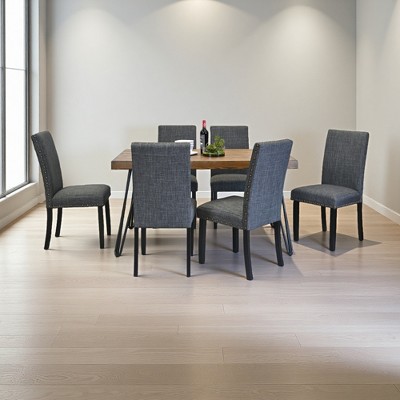 - dark brown dining table set for 6