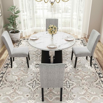 MAYEERTY 5-Piece Round Dining Set, 43" Table & 4 Upholstered Chairs