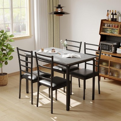 TiramisuBest 5-Piece Round Dining Table Set with Antique Gray for Dining and Kitchen