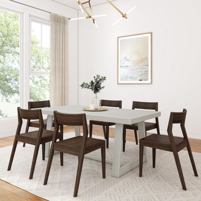 Plank+Beam 72" Classic Solid Wood Dining Table Set, Black Wirebrush, + 6 Chairs