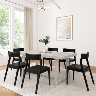 Plank+Beam 72" Classic Solid Wood Dining Table Set, Walnut Wirebrush, + 6 Chairs
