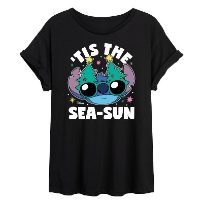 Women's - Lilo & Stitch - Tis the Sea-Sun Christmas Oversized Graphic T-Shirt
