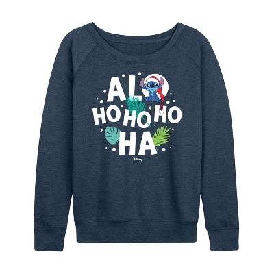 Women's - Lilo & Stitch - Alo Ho Ho Ho Ha Christmas Lightweight French Terry Wide Neck Long Sleeve Graphic Shirt