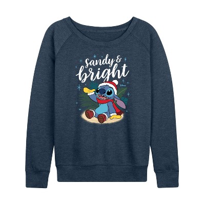 Women's - Lilo & Stitch - Sandy and Bright Christmas Lightweight French Terry Wide Neck Long Sleeve Graphic Shirt