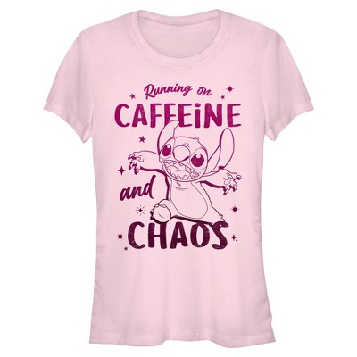 Juniors Womens Lilo & Stitch Caffeine And Chaos T Shirt