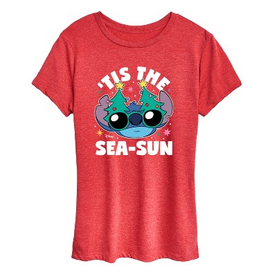 Women's - Lilo & Stitch - Tis the Sea-Sun Christmas Short Sleeve Graphic T-Shirt