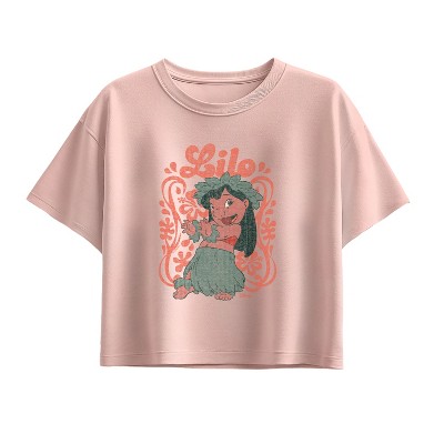 Girls' - Lilo & Stitch - Lilo Floral Frame Short Sleeve Boxy Graphic T-Shirt