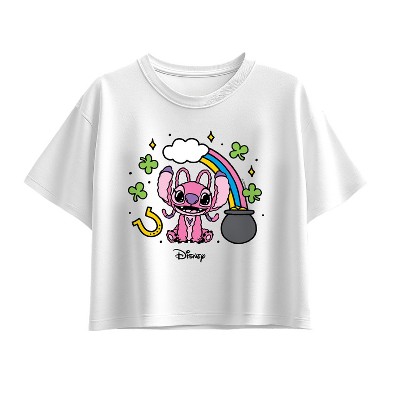 Girls' - Lilo & Stitch - St Paddys Angel Short Sleeve Boxy Graphic T-Shirt