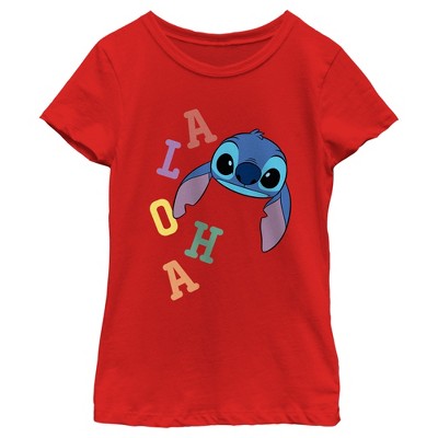 Girl's Lilo & Stitch Colorful Aloha Stitch Face T-Shirt