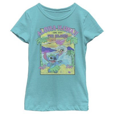 Girl's Lilo & Stitch Aloha Hawaii Come Visit the Islands T-Shirt