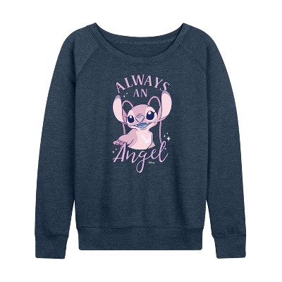 Women's - Disney - Lilo & Stitch Lightweight French Terry Wide Neck Long Sleeve Graphic Shirt
