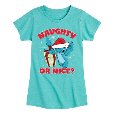 Girls' - Lilo & Stitch - Naughty Or Nice Christmas Fitted Short Sleeve Graphic T-Shirt