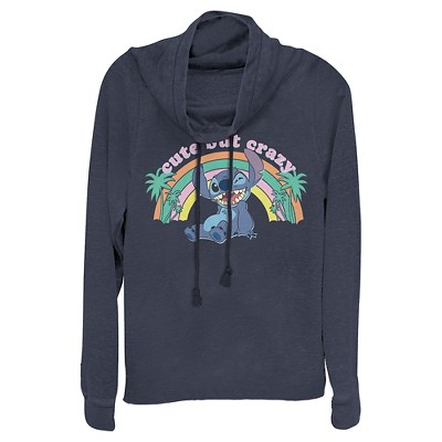 Juniors Womens Lilo & Stitch Cute But Crazy Cowl Neck Sweatshirt