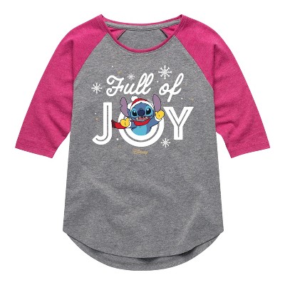 Girls' - Lilo & Stitch - Full Of Joy Christmas Shirt Tail Raglan Graphic T-shirt