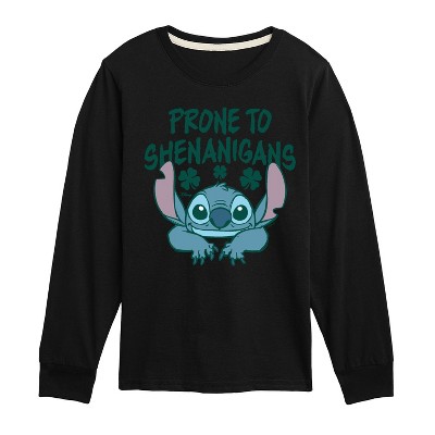Boys' - Lilo & Stitch - St. Patrick's Day Prone To Shenanigans Long Sleeve Graphic T-Shirt