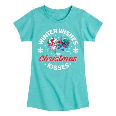 Girls' - Lilo & Stitch - Winter Wishes and Christmas Kisses Fitted Short Sleeve Graphic T-Shirt