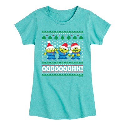 Girls' - Toy Story - Green Christmas Fitted Short Sleeve Graphic T-Shirt