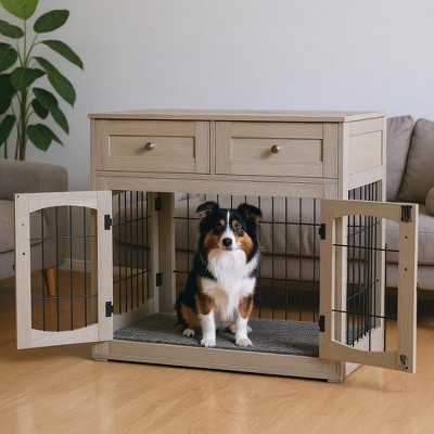 3-Doors Dog Crate Furniture, with 2 Drawers