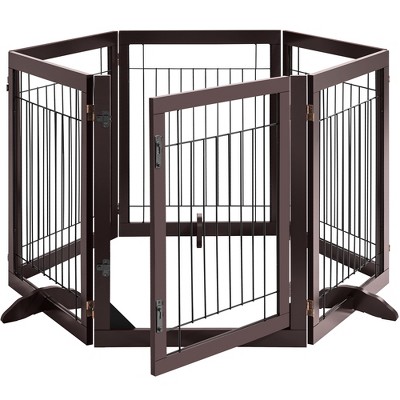 Yaheetech 34" Height Tall Pet Gate with Wood and Wire for Doorway