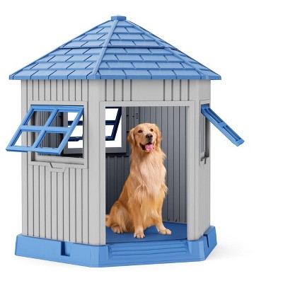 Metal Dog Kennel Outside,Heavy-Duty Outdoor Dog Cage with Roof and Lock