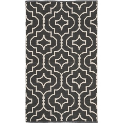 Dark Gray And Ivory Wool Oriental Hand Hooked Area Rug