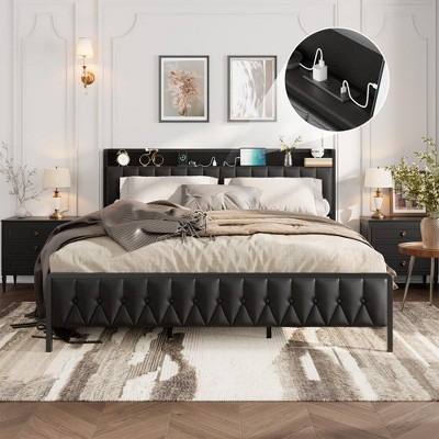 AMERLIFE Bed Frame with 51.2" Tall Upholstered Headboard and Four Poster Design