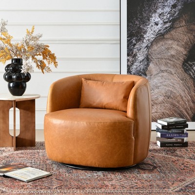 KINWELL Modern Top Grain Genuine Leather Swivel Armchair with Pillow