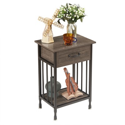 Modern Square End Side Table, Tempered Glass Top Metal Coffee Table