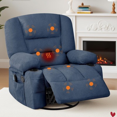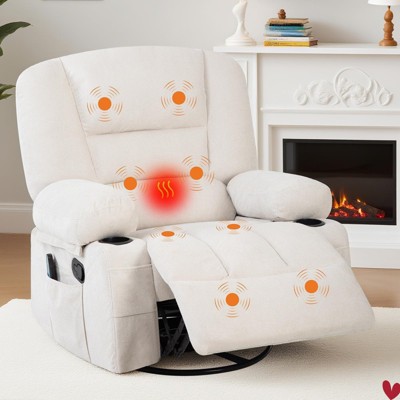 360° Swivel Recliner Chairs w/ Vibration Massage & Heating, Plush Chenille Upholstered Reclining Chair