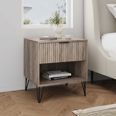 GDFStudio Dumbo Modern Fluted Nightstand with 1 Drawer and 1 Open Shelf