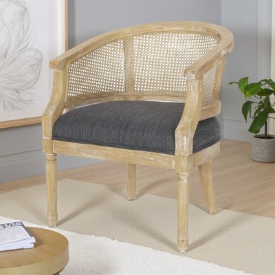 25.5" Polyester Rubber Wood Accent Chair with Cane Webbing