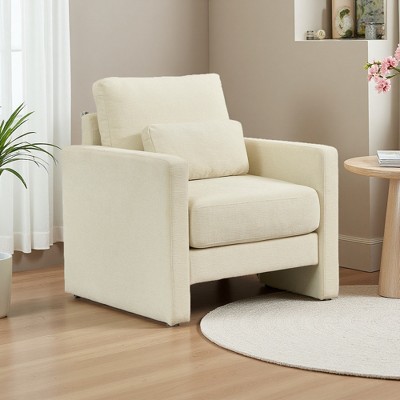 31" Boucle Upholstered Accent Chair with Wood Frame and Foam Seat