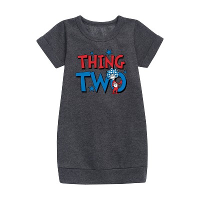 Girls' - Dr. Seuss - American Thing Two Graphic Short Sleeve Fleece Dress