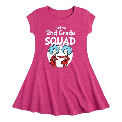 Girls' - Dr. Seuss - 2nd Grade Squad Thing 1 and Thing 2 Fit & Flair Cap Sleeve Graphic Dress