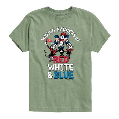 Boys' - Dr. Seuss - Cat in the Hat Waving Banners of Red, White and Blue Short Sleeve Graphic T-Shirt