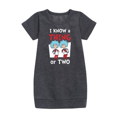 Girls' - Dr. Seuss - I Know A Thing Or Two School Graphic Short Sleeve Fleece Dress