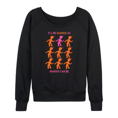 Women's - Dr. Seuss - I'll Be Famous Lightweight French Terry Wide Neck Long Sleeve Graphic Shirt