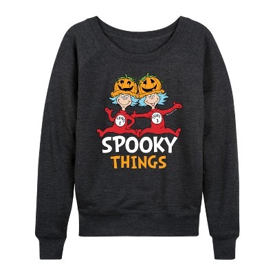 Women's - Dr. Seuss - Spooky Things Lightweight French Terry Wide Neck Long Sleeve Graphic Shirt