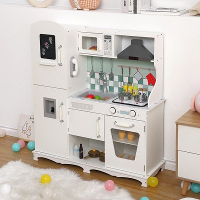 Teamson Kids Little Chef Savannah Wooden Play Kitchen with Fridge & Washing Station, 21 Accessories